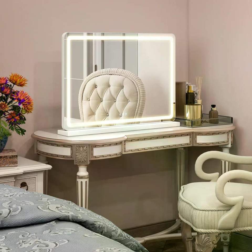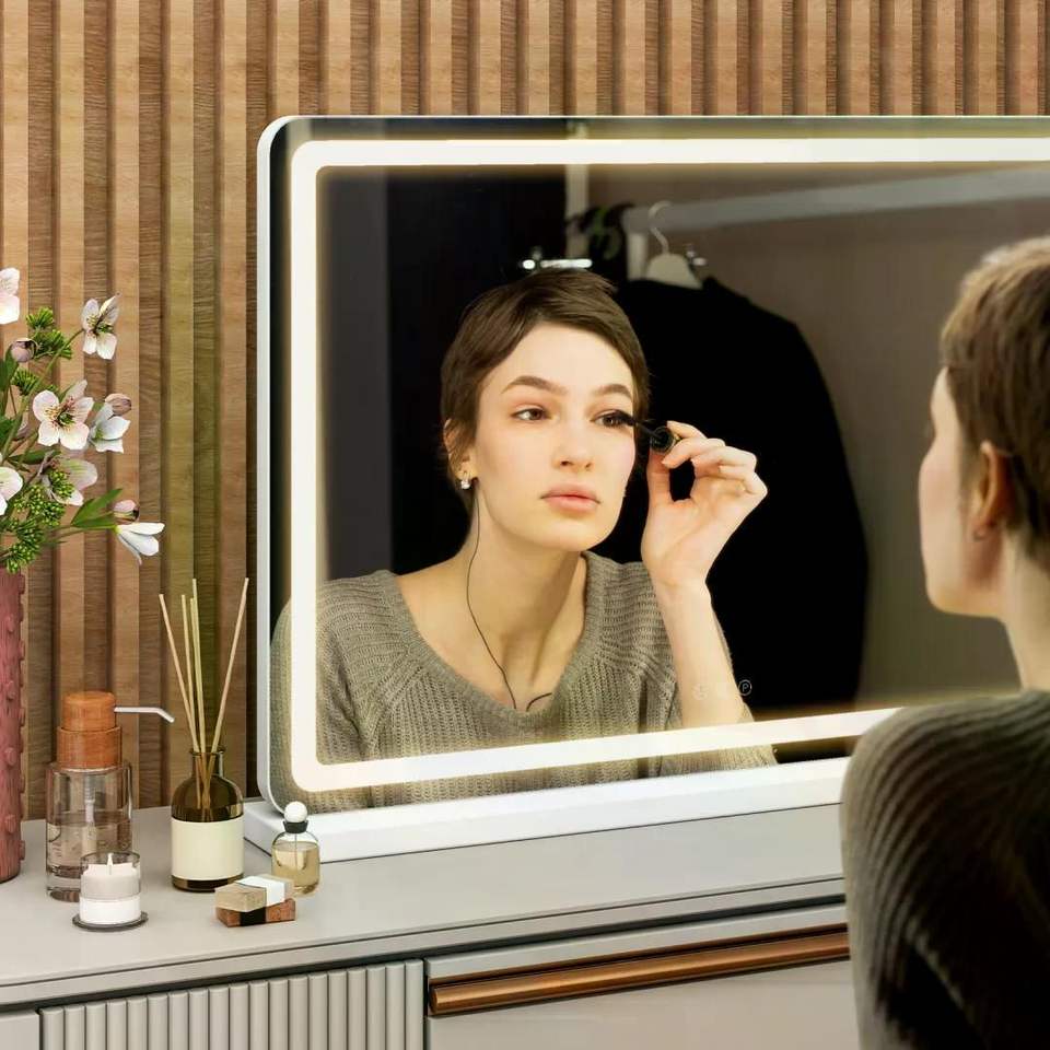 Specchio LED da Trucco con Cornice in Alluminio, Dimmerabile, 3 Modalità di Colore, Funzione Memoria per Camera da Letto o Bagno