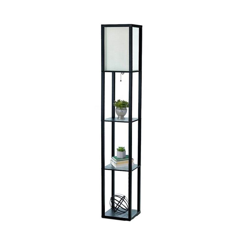 Lampada da Terra con Mensola in Legno LED e Ripiani Espositivi per Soggiorno, Camera da Letto, Hotel, Sala Riunioni