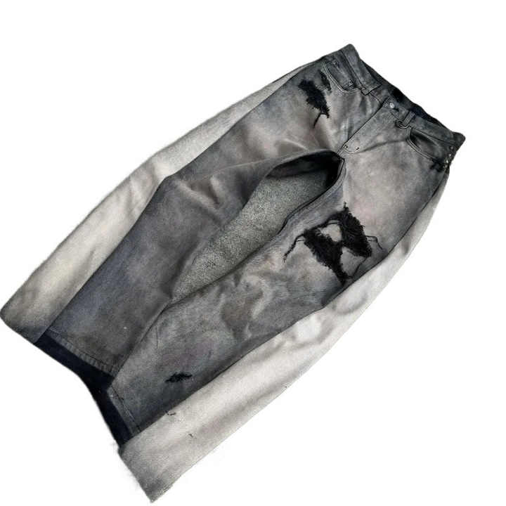 LEDUO Black Gray Distressed Straight Jeans Mid Waist Light Wash Casual Trousers Streetwear Ripped Destroyed Winter Autumn Summer