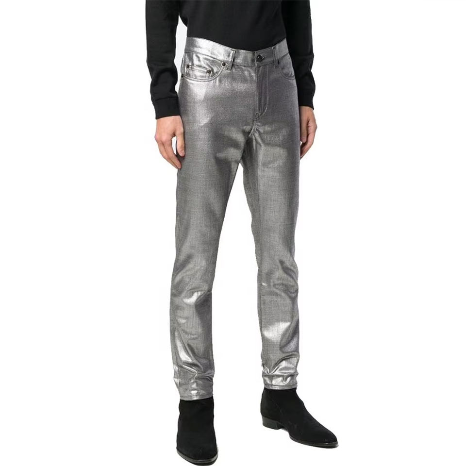 Jeans Casual da Uomo LEDUO Personalizzati in Argento, Vita Media, Gamba Dritta, Vestibilità Regolare, Pantaloni in Denim, Servizio OEM