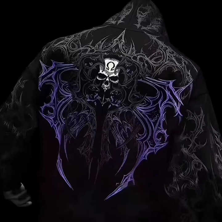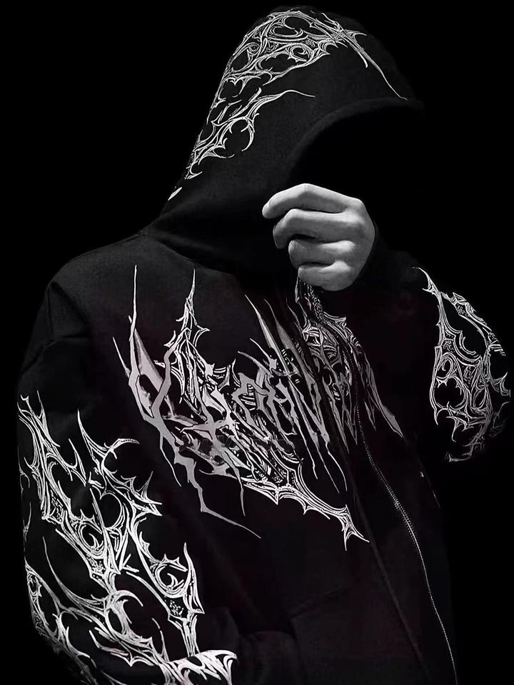 Felpa con Zip LEDUO con Stampa Teschio e Spine, Stile Y2K Emo Punk Streetwear, Unisex, per Uso Quotidiano, Alta Qualità, Grafica Accattivante