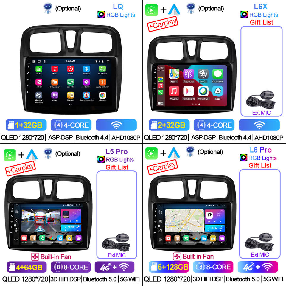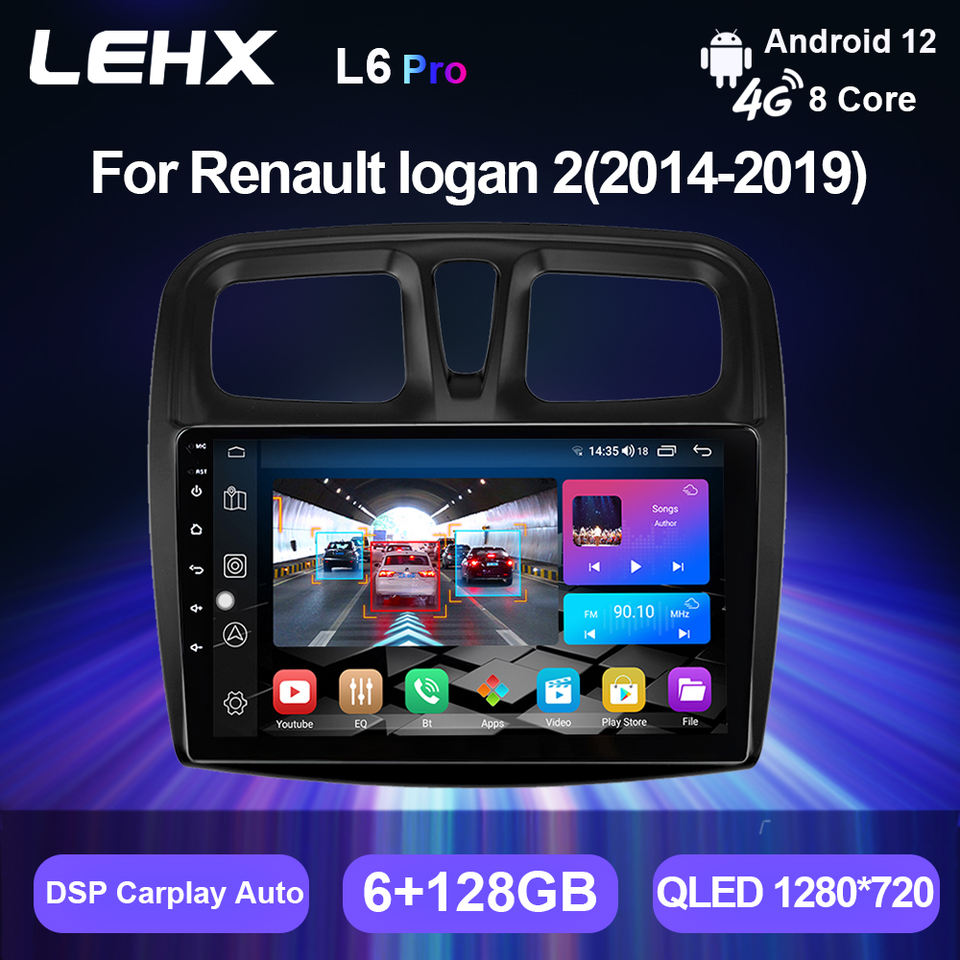 Autoradio LEHX con Lettore Video per Renault Logan 2 Sandero 2 2014-2019 Symbol, Android 12, 2 Din, Carplay, GPS, Lettore DVD per Auto