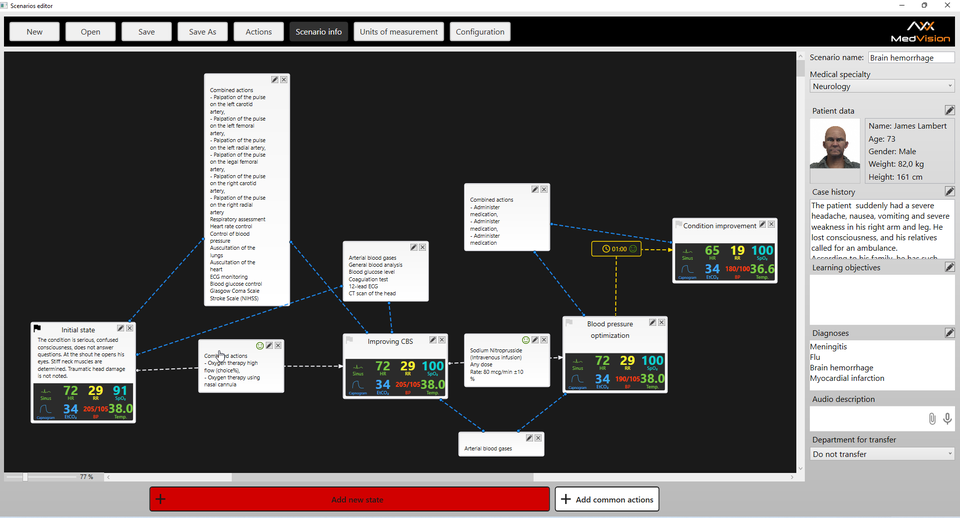 Modifica dello scenario di interazione virtuale con il paziente in tempo reale dei segni vitali