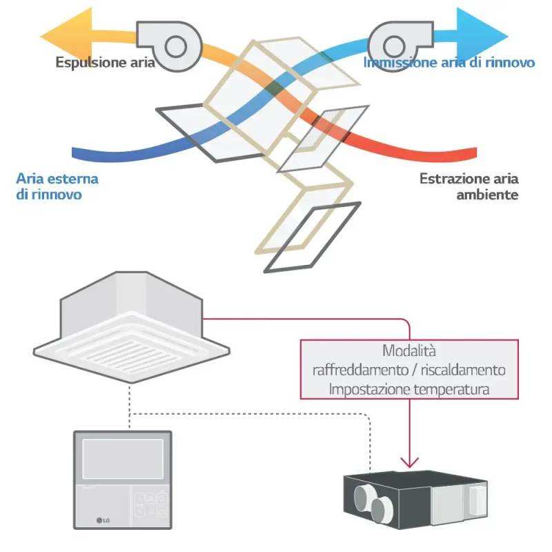 LG ERV LZ-H025GBA4 Sistema HVAC Flessibile Contemporaneo, Unità di Recupero Calore Entalpico a Flusso Incrociato con Controllo Cablato, 325CFM AC 230V