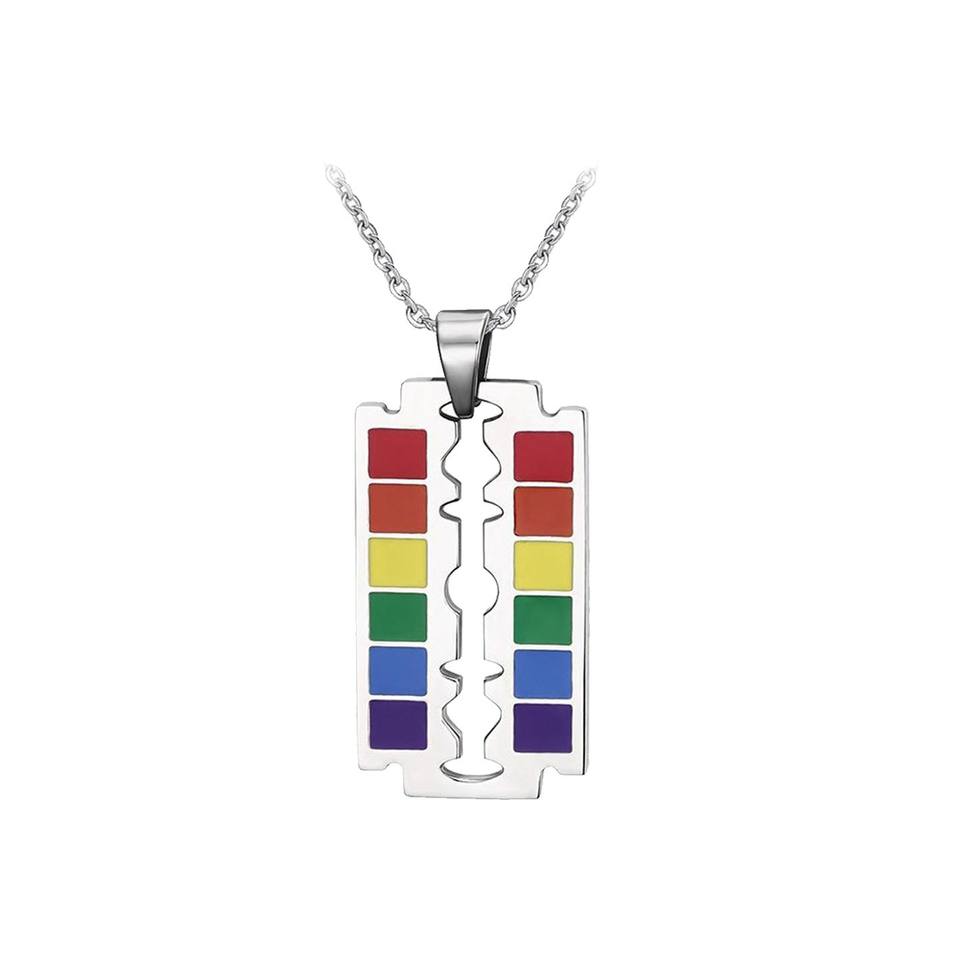 LGBTI Pride Necklace Rainbow Plate Razor Blade Vintage Style Titanium Stainless Steel Chains Trendy Geometric Pattern Jewelry