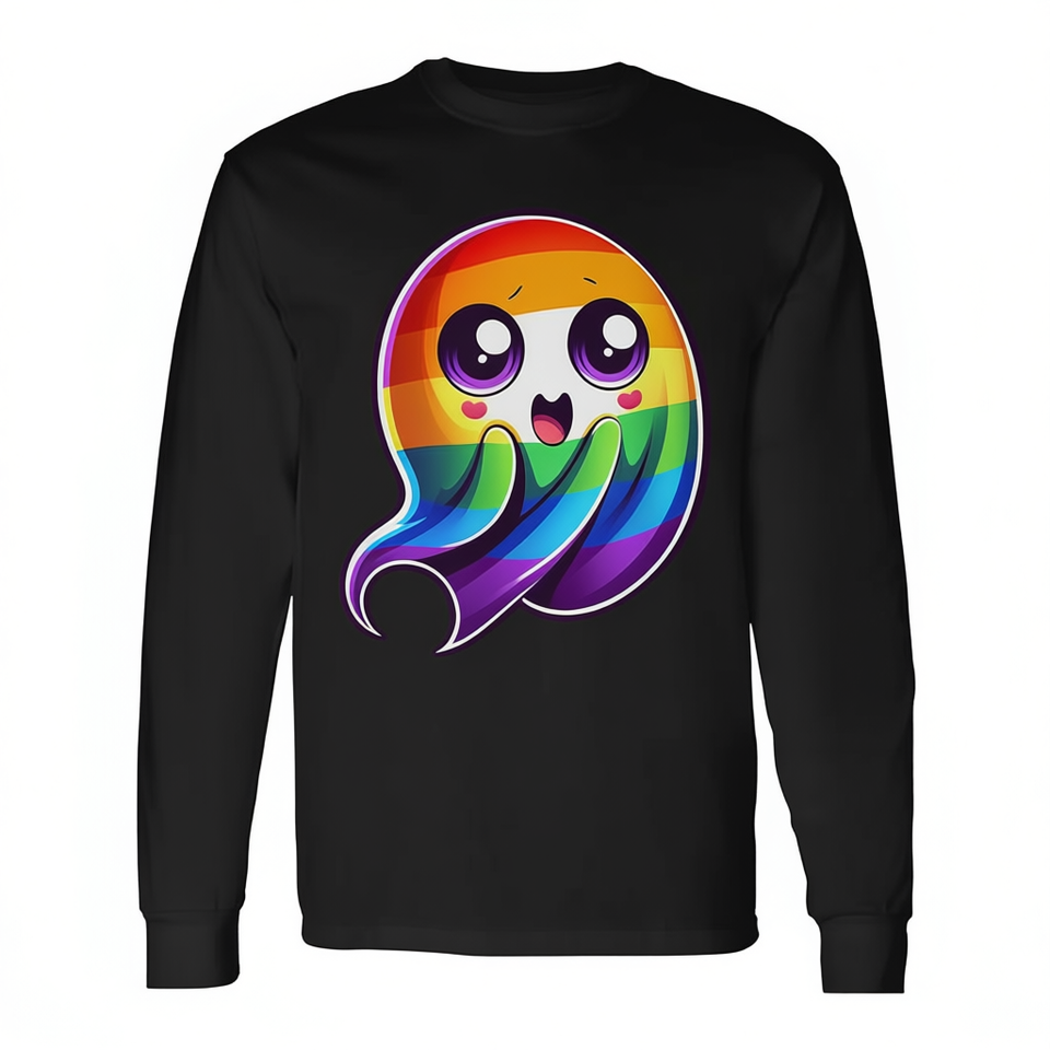 Maglietta a maniche lunghe LGBTQ Ghost Rainbow, maglietta promozionale Gay Pride