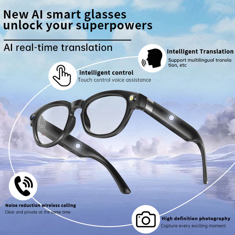 LIGE BWQ8 4K Video Smart Glasses Call Recording Outdoor Sport Glasses with Camera Wearable Eyeglass 32G Memory Open on Computer