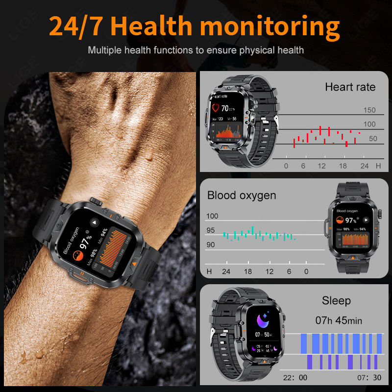 LIGE BWV17 Smartwatch per uomo – risposta chiamate, torcia LED, fitness, impermeabile, lunga autonomia, compatibile Android/iOS
