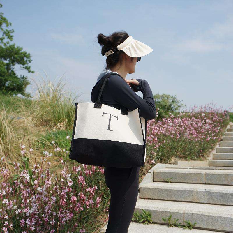 LILALILA Personalized Shopping Beach Bridesmaid Gift Embroidered Initial Carry-On Canvas Bags With Custom Printed Logo