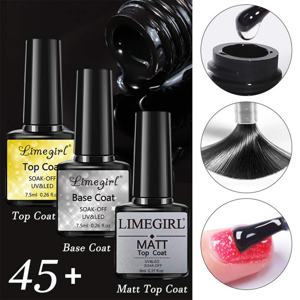 LIMEGIRL Set di Smalti per Unghie Fai-da-Te 7,5ml/4 Flaconi, Gel Primer ad Asciugatura Rapida con Top Coat e Base Coat per Uso Domestico e Professionale, Regalo per Ragazze