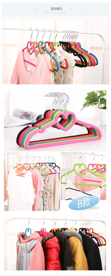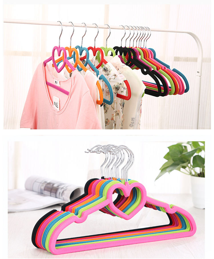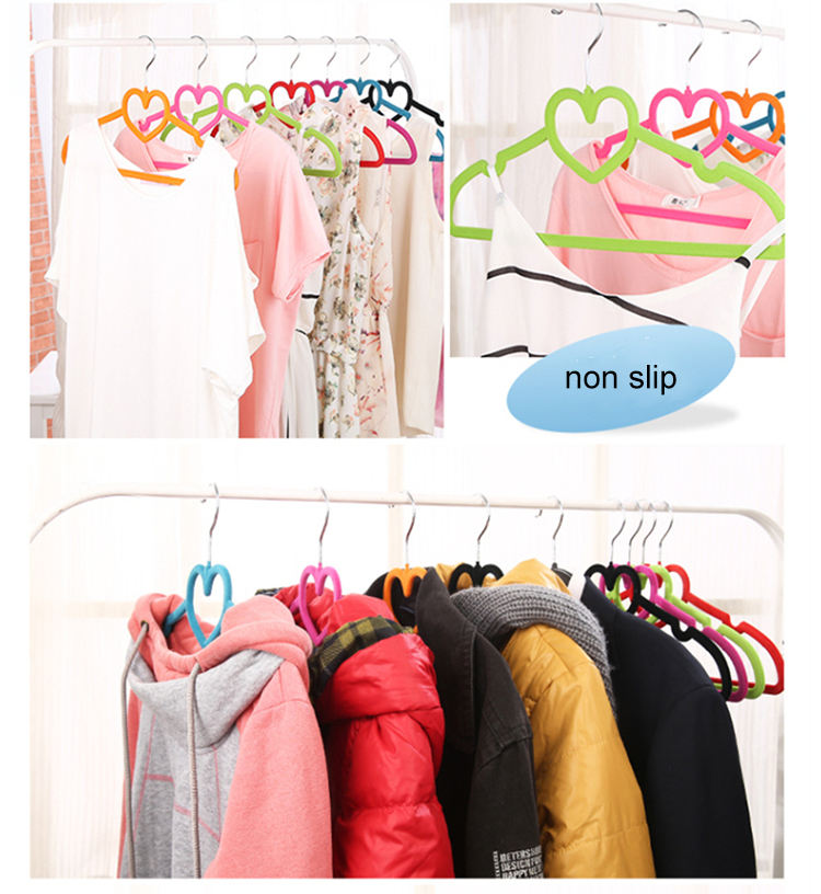 Appendiabiti LINDON in Plastica a Forma di Cuore con Rivestimento Colorato in Velluto per Camicie, Cappotti e Abiti