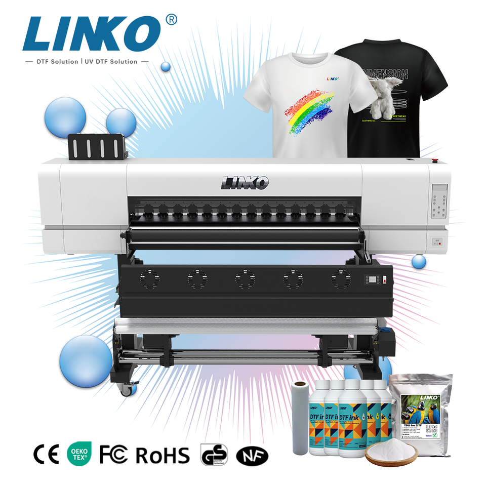 LINKO Wholesale Women's Clothing T-shirt Printing Machine 1.3m Four Epson Head Dtf Printer With Pet Film Hot Melt Powder