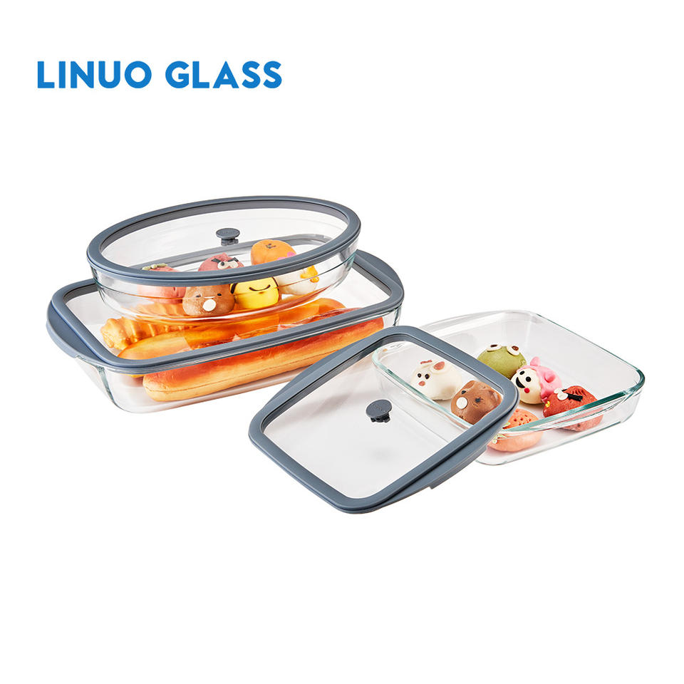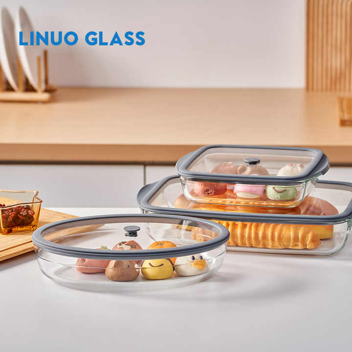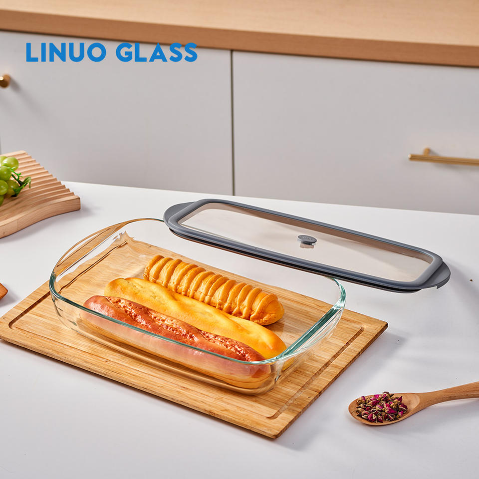 LINUO multiplo utilizza pirofila in vetro con diverse dimensioni rettangolare ad alto vetro borosilicato forno teglia per pizza teglia torta piatto