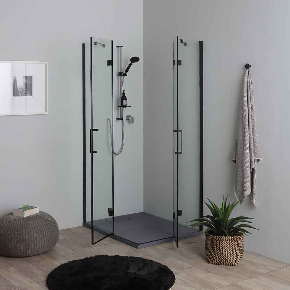 Box Doccia KORICINI Nero con Ante a Battente 80x100 H190 Set Sei Pezzi Facile da Installare Moderno
