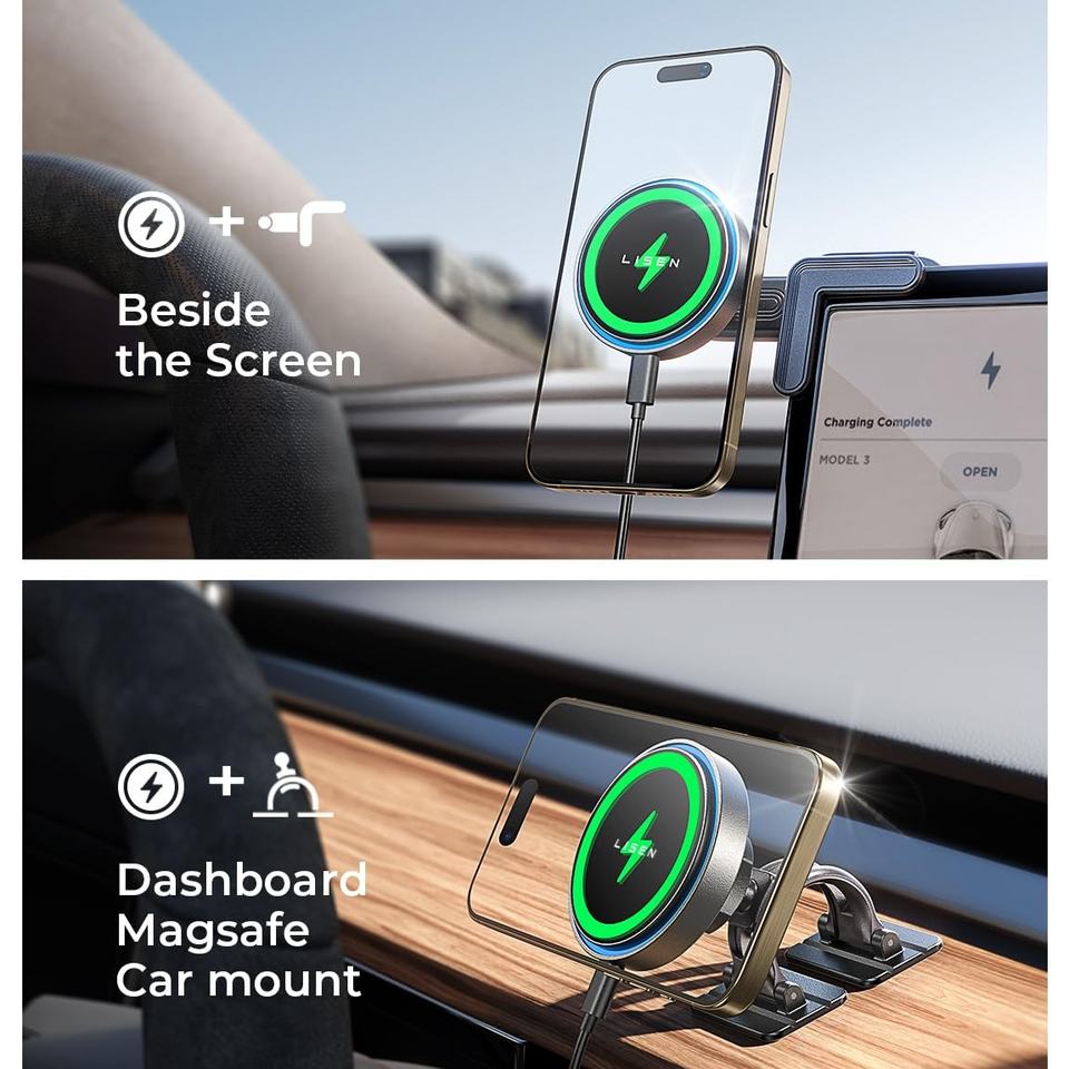 Supporto auto LISEN caricatore Wireless 15W supporto magnetico per Tesla modello Y 3 accessori per iPhone 16 Pro Plus telefono Android