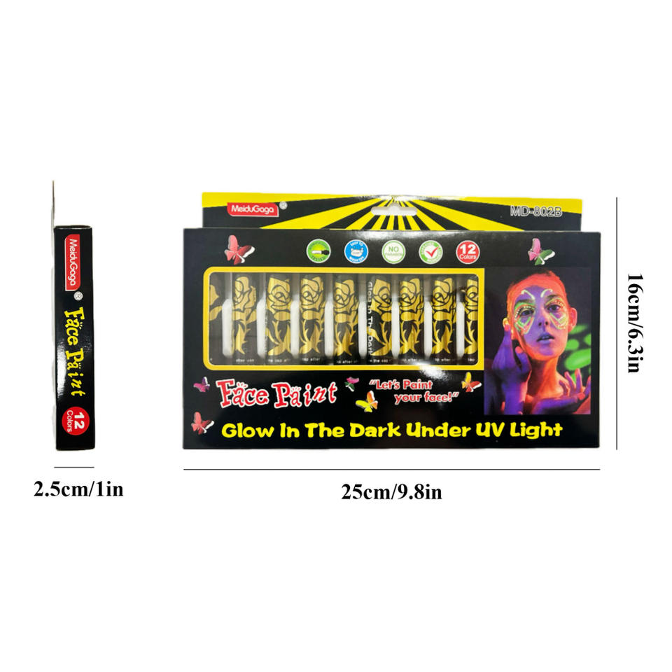 "Kit trucco LISI 12 colori Neon luce nera UV Glow Body Paint con pastelli fluorescenti per il viso"