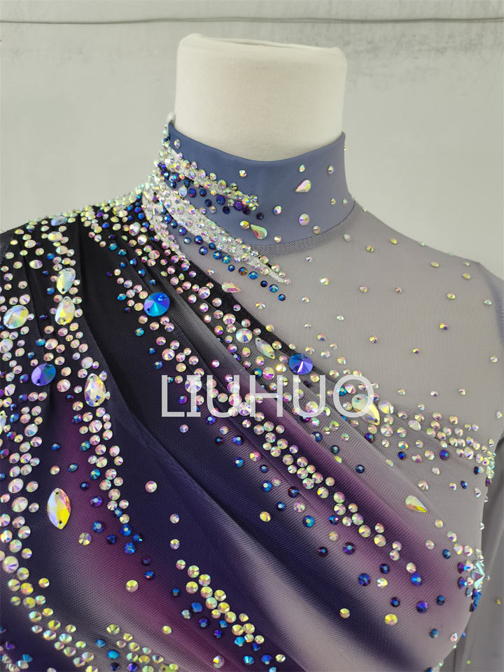 LIUHUO Custom Figure Skating Dress Girls Teens Purple Ice Skating Dresses Competition Ballroom Gym and Fitness Costumes Women