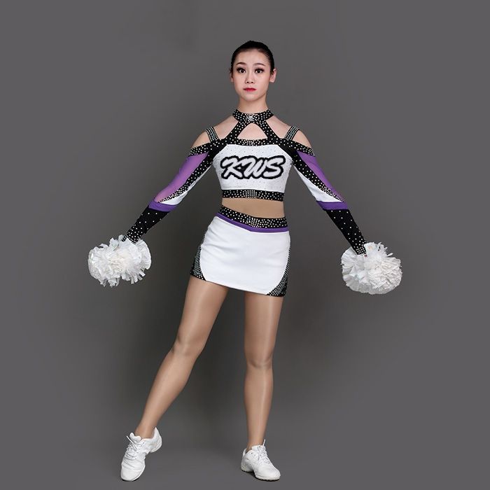 LIUHUO Costume da Cheerleader di Alta Qualità con Strass e Nastro Decorativo, Uniforme per Cheerleading