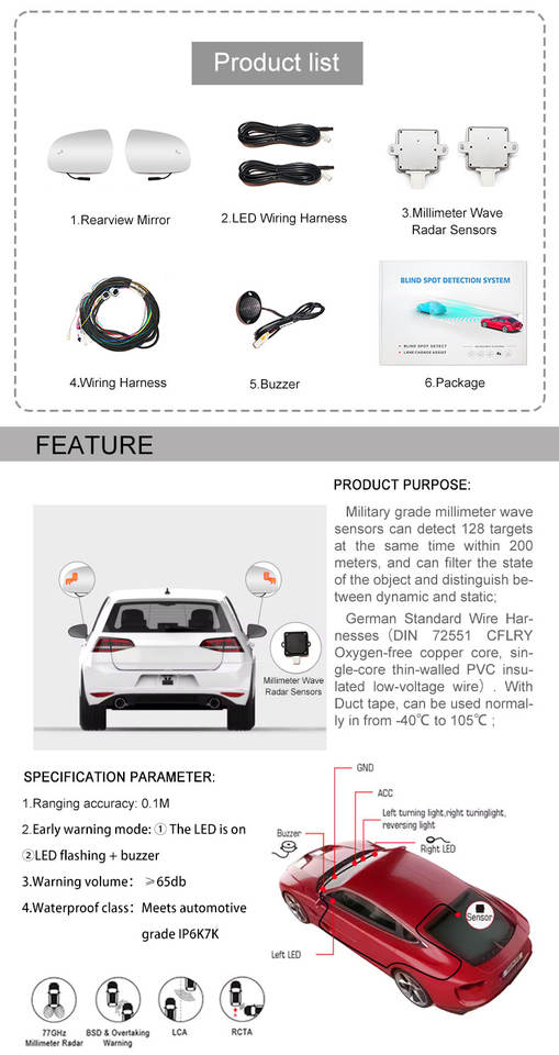 LIUSH veicolo di rilevamento anti-collisione di aiuto di avvertimento 77GHz sensore con cambio corsia Assist Display a specchio per 2024 Toyota LC 300