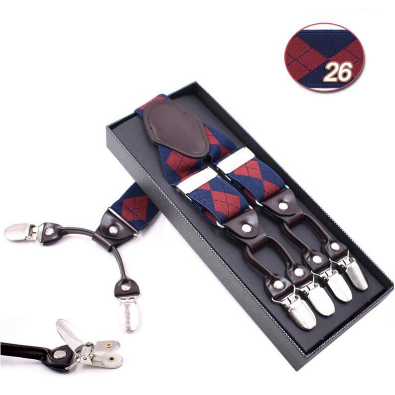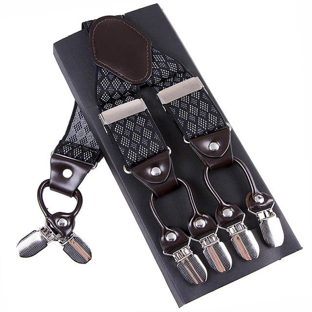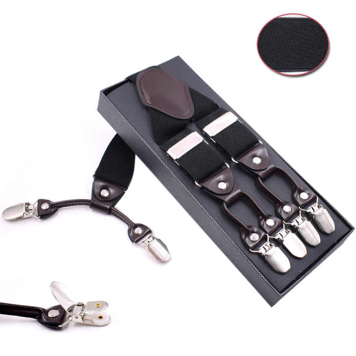 Bretelle da uomo LK Fashion Classic larghe 3,5 cm, regolabili, con fibbia in ferro a Y e 6 clip - Regalo premium per adulti