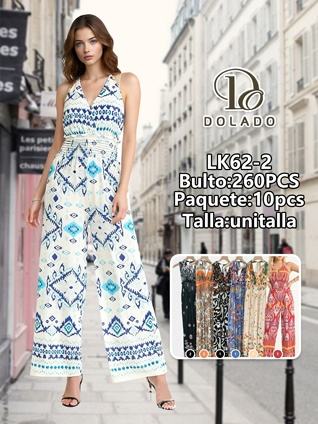 LK62-2 Women's Bohemian Jumpsuit High Waist Sleeveless Printed Geometric Pattern Loose Fit Ankle Length Spring Summer Beach Wear