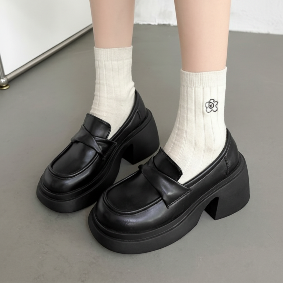 LK8818 Women's Leather Penny Loafers with 2 Color Twist Strap Height Increasing Heel Shoes