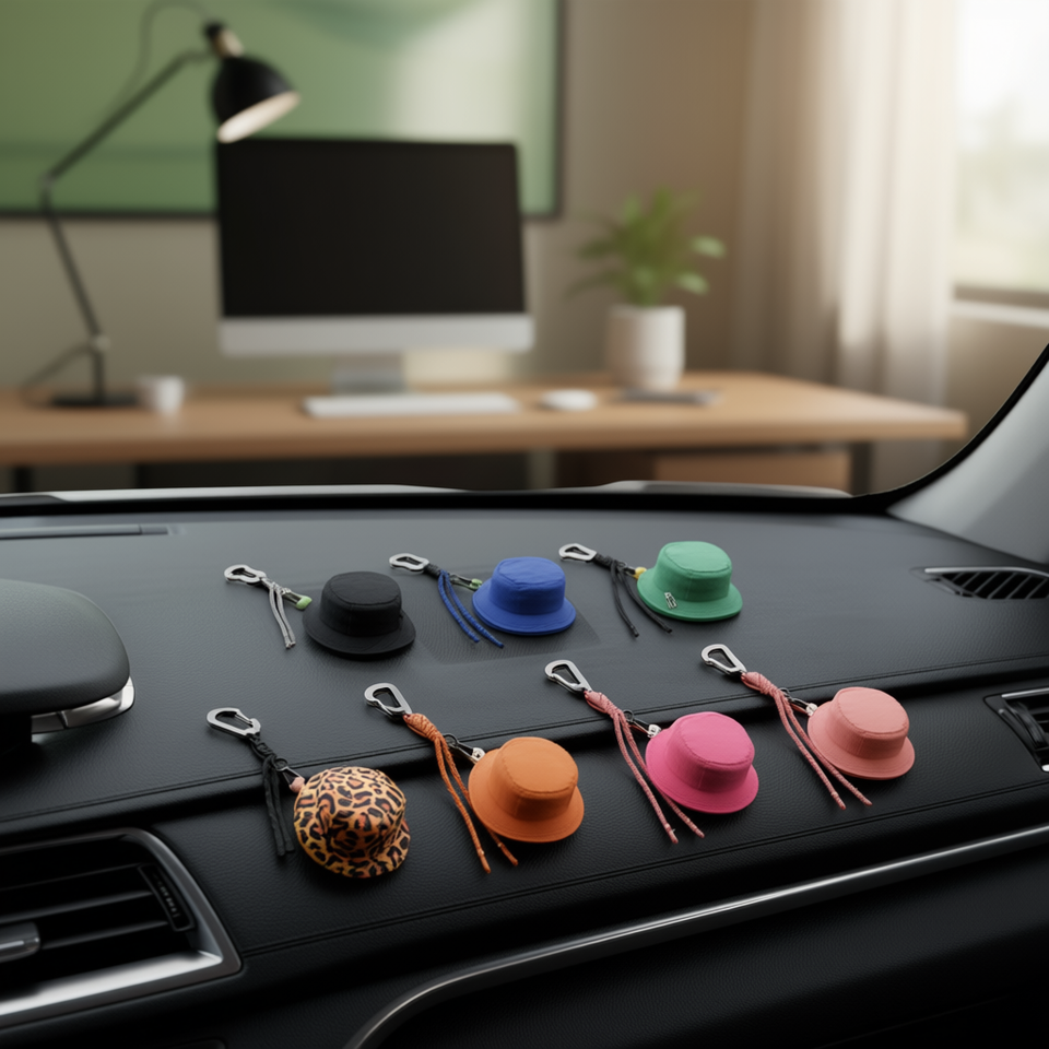 Portachiavi con Cappello da Pescatore in EVA e Moschettone in Lega di Zinco per Auto, Casa e Ufficio