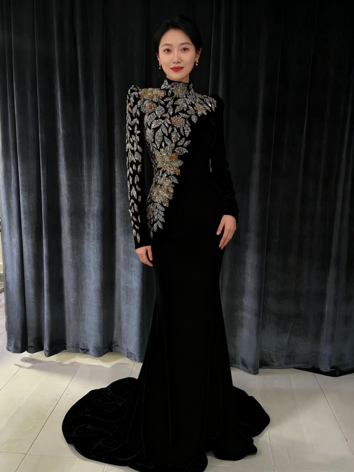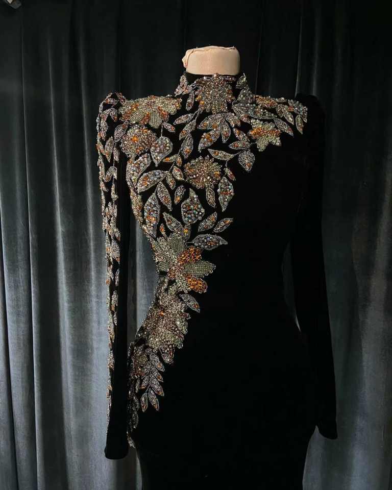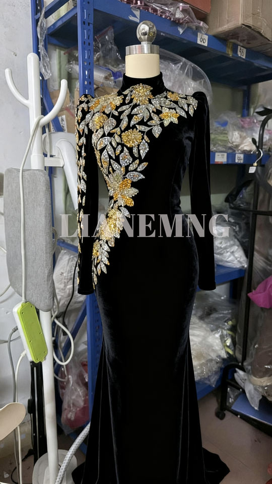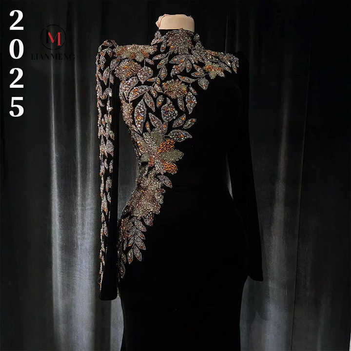 LM A883 nuovo di zecca brillante stile sirena di diamanti con paillettes con perline in velluto naturale Midi abito da sera da donna