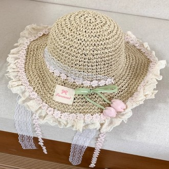 LND for Pink Flower Rattan Hat Women's Vacation Sun Cap Bucket Hat and Beach Straw Hobo Bags Style