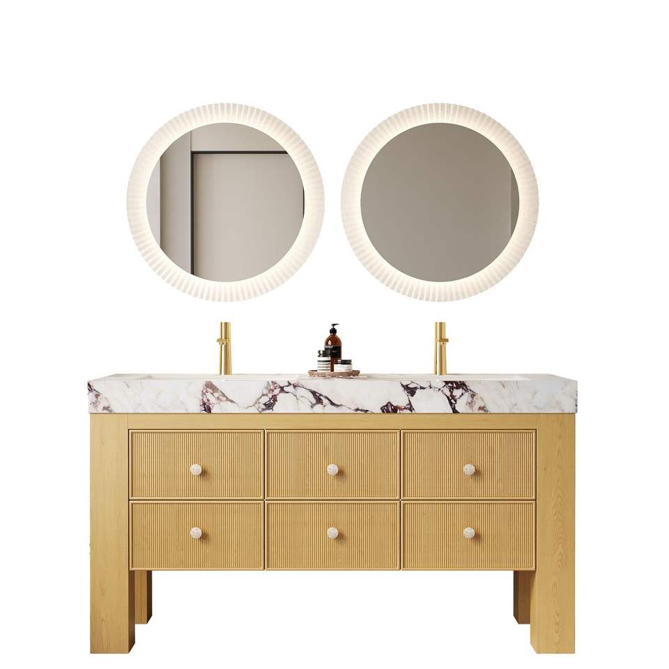 LONIS 60 \ "Freestanding bagno Vanity 6 cassetti Pre-assemblato Corolla rovere sinterizzato pietra controsoffitto due viola Texture ceramica
