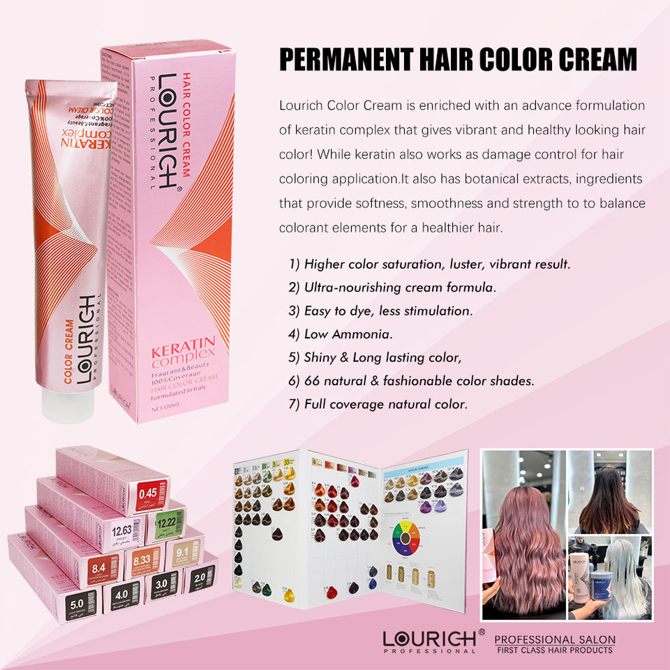 Tinta per Capelli Permanente Professionale LOURICH Salon Hair Essentials alla Cheratina, Alta Pigmentazione, Basso Contenuto di Ammoniaca