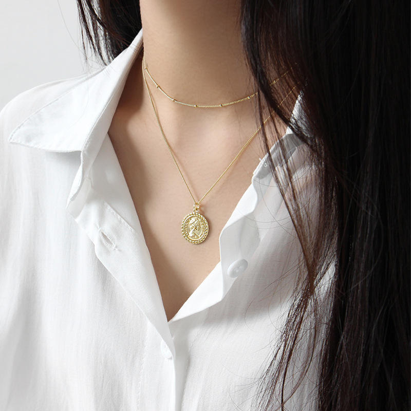 LOZRUNVE placcatura in oro intagliato antico rilievo 925 AU Silver collana e ciondolo