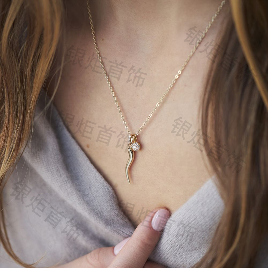 LOZRUNVE Rhodium Plated Jewelry 925 Sterling Silver High Quality Polish Italian Horn Pendant Necklace