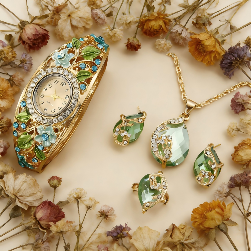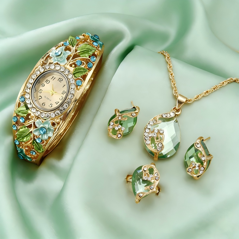 LP46 Elegante Set di Gioielli da Donna in Stile Retrò con Orologio, Collana e Orecchini, Set di 4 Pezzi in Lega con Orologio al Quarzo, Regalo di Lusso per Signore