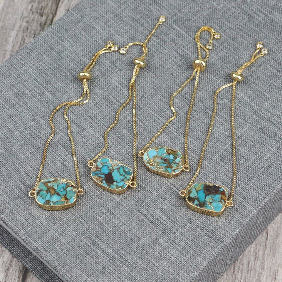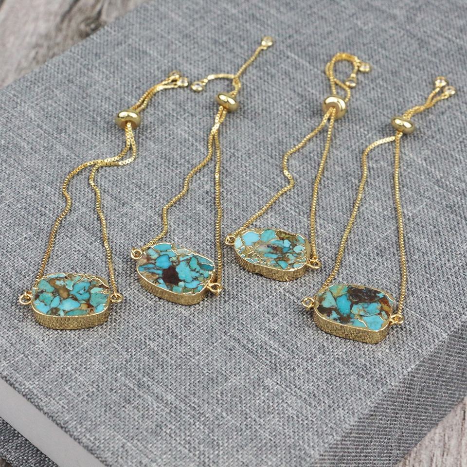 LS-A143 Splendida naturale del turchese del braccialetto tirare catena regolabile braccialetto con placcatura in oro del commercio all'ingrosso 2020