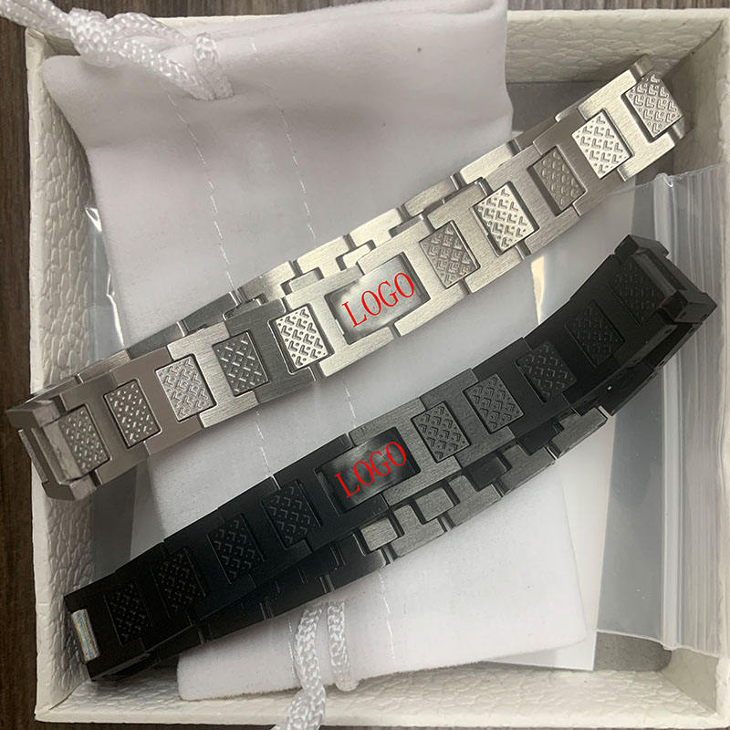 LS Brand logo Stainless Steel Jewelry Non Tarnish 18k Gold Silver Black Bracelet Punk Men Crocodile Bracelet