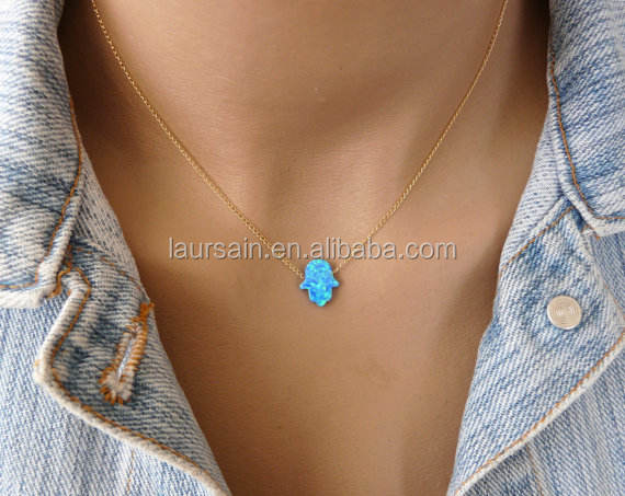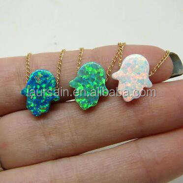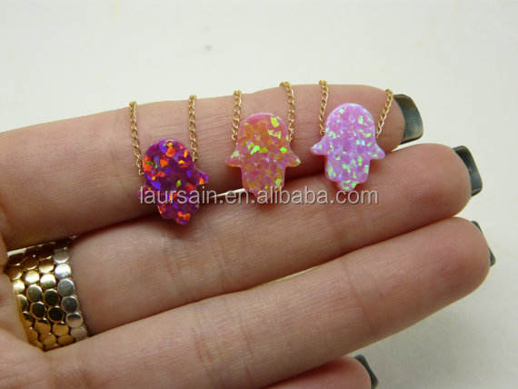 LS-D7707 Yoga meditazione Hamsa ciondolo a mano collana di gioielli di guarigione rosa opale pietra oro catene d'argento per le donne in 16 pollici