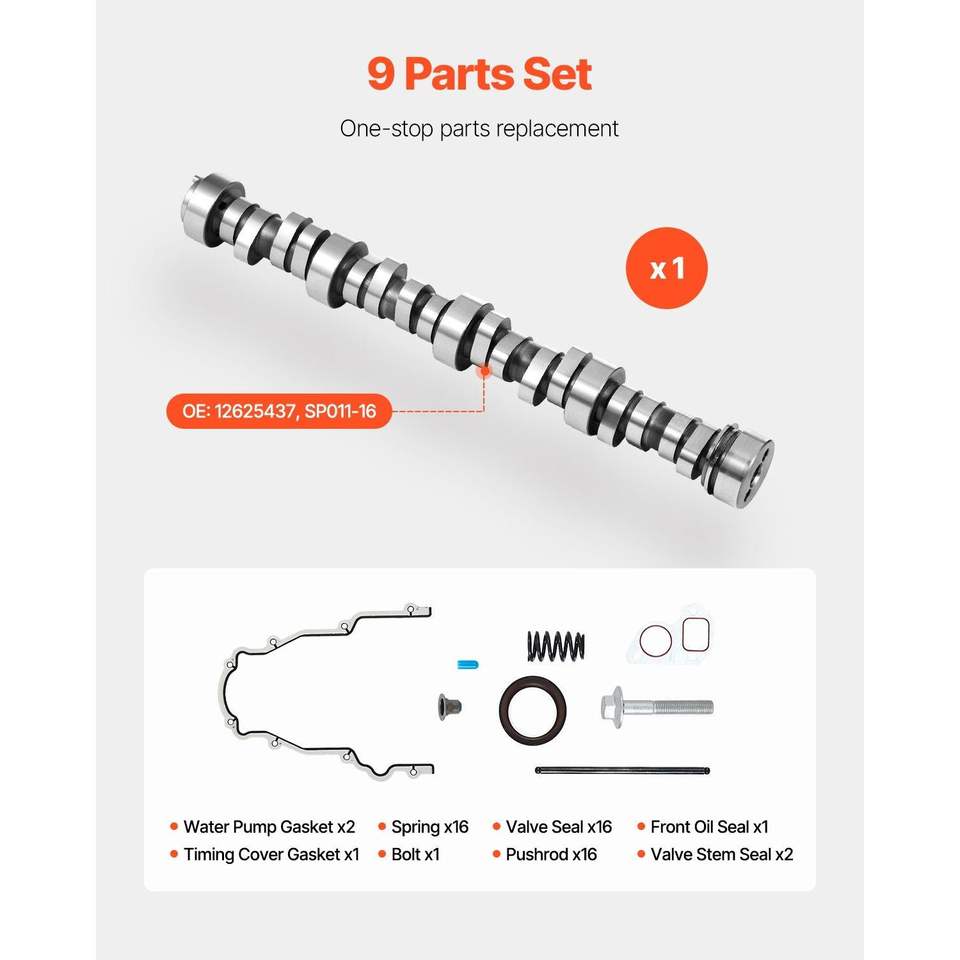Kit Camme LS Truck 9 Pezzi per Motori GM Gen3/4 1999-2013, Compatibile con Tuning Norris T, Guarnizioni, Spingitappi, Molle e Guarnizioni per il Blocco Motore