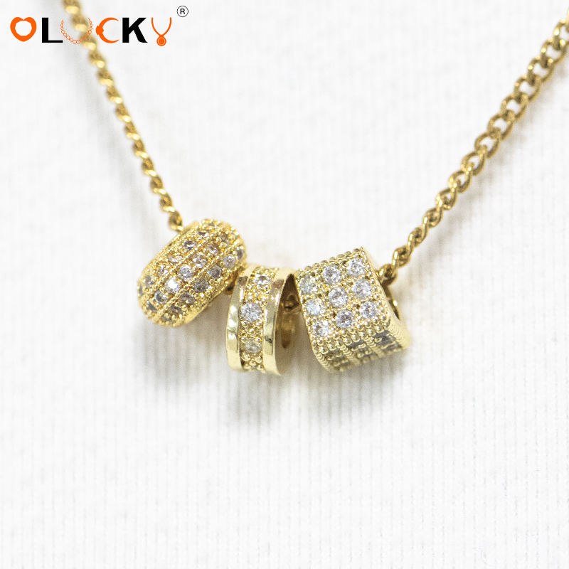 LUCKYJIU Custom Jewellers Fashion Dainty Pave Cubic Zirconia 18k Gold Plated DIY Beaded Charm Necklace for Women