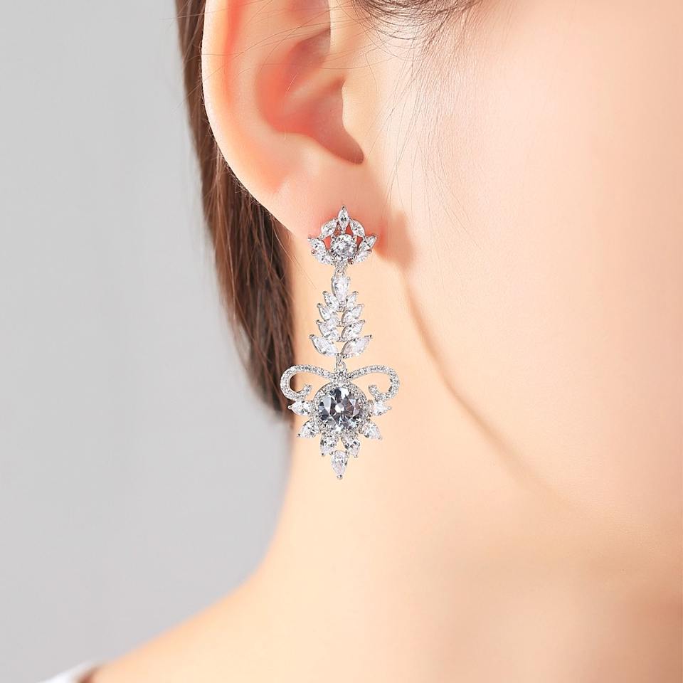 LUOTEEMI Gorgeous 3A Clear Zircon Drop Luxury Marquise Flowers Chandelier Long Dangle Earrings Bridal Wedding Bijoux Brincos