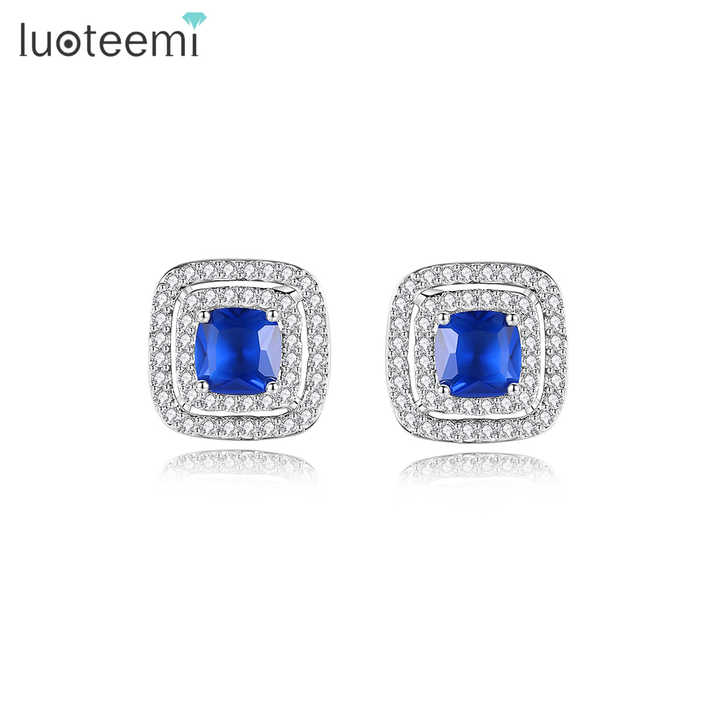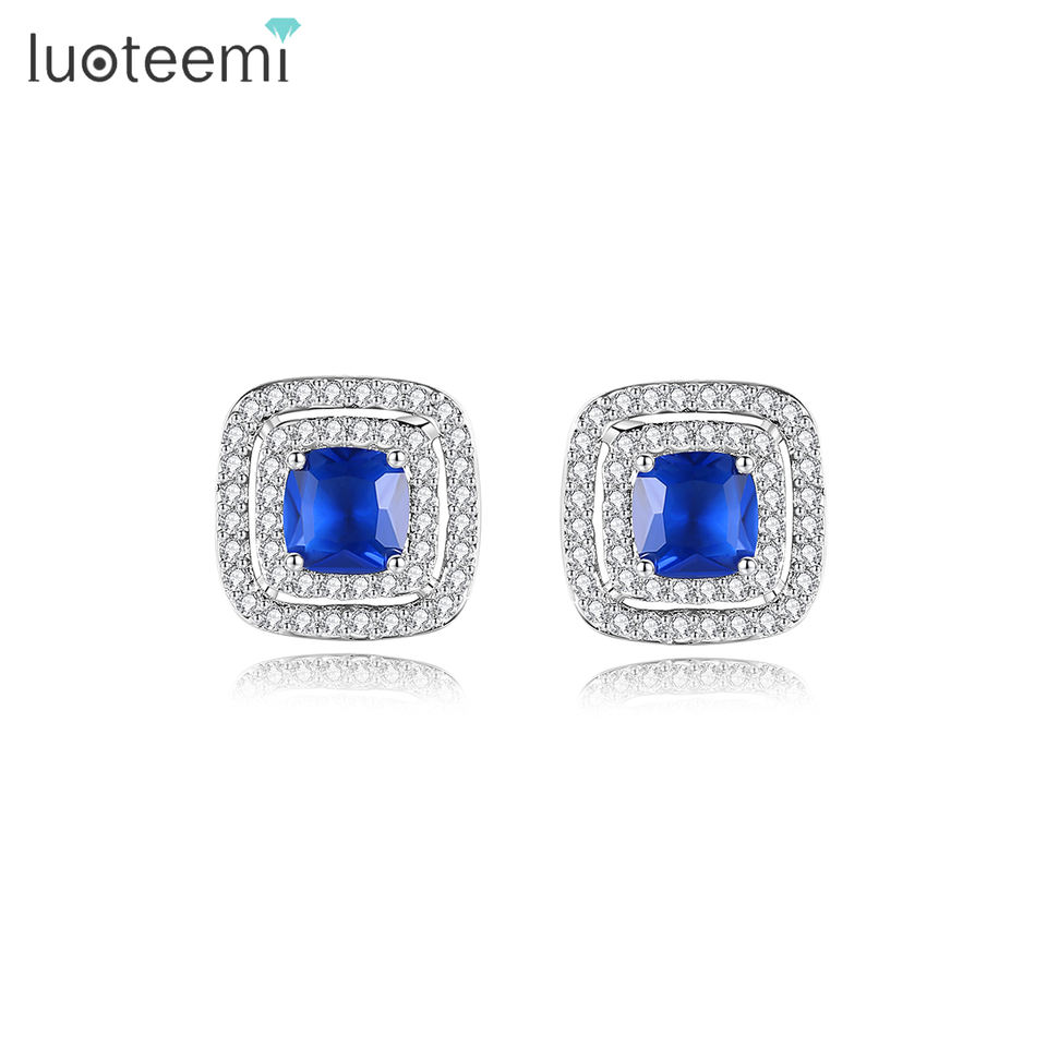 LUOTEEMI New Arrival Women Fashion Online Shopping White Gold Jewellery CZ Micro Pave Halo Design Wholesale Stud Earrings