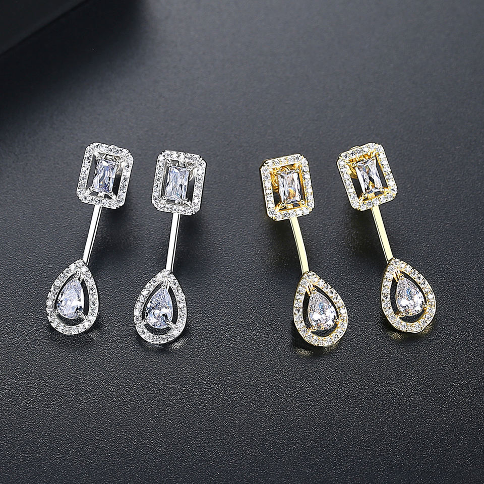 LUOTEEMI Nuovi Orecchini Pendenti Quadrati alla Moda con Zirconia Cubica Trasparente, Orecchini da Sposa in Cristallo per Donne e Ragazze
