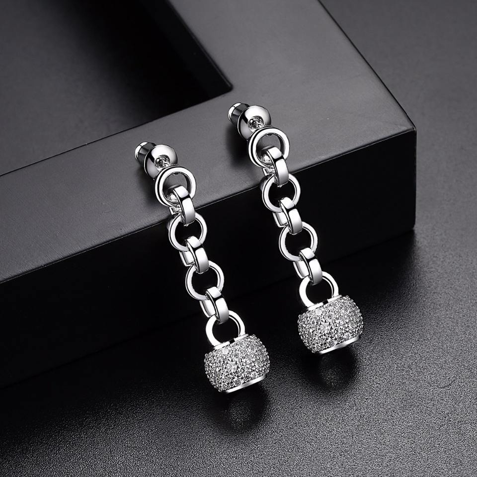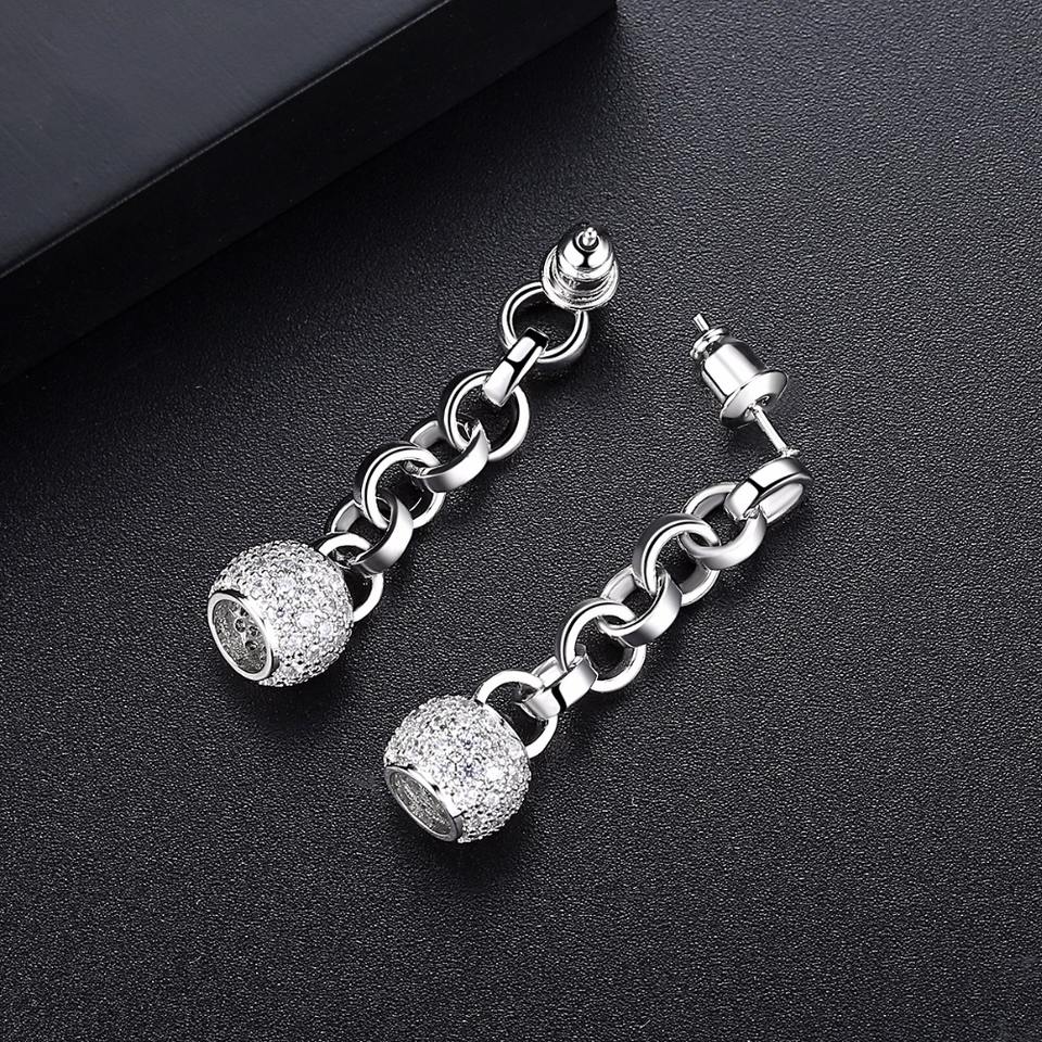 LUOTEEMI Office Female Geometric Cubic Zirconia Ball Silver Color 4 Loops Statement Drop Earrings for Women Boucles Doreilles