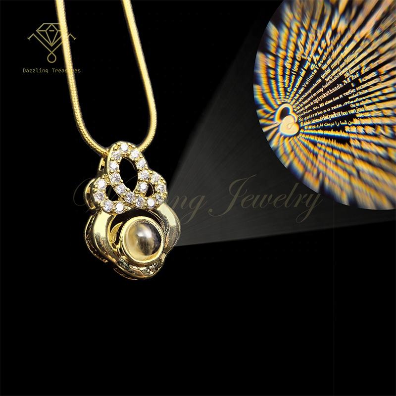 LV021 Vintage 18K Gold Plated 100 Languages 'I Love You' Projection Charm Necklace Pendant Fashionable Stainless Steel Fashion