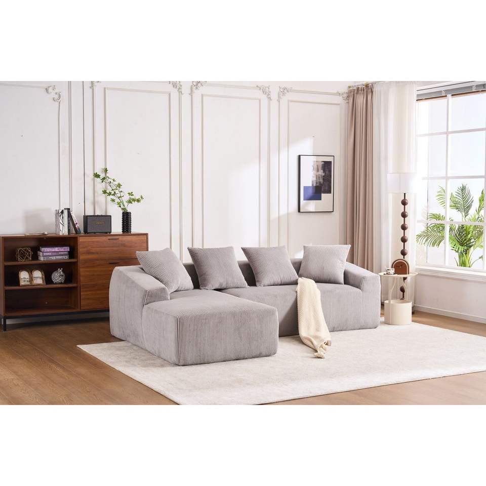 LY-023 leggero divano a compressione grigio 3 posti in velluto a coste pieno spugna Chaise Longue combinato 4 cuscini per soggiorno a casa