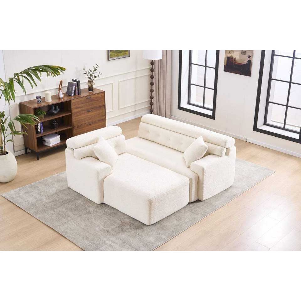 LY-029B bianco divano a compressione 3 posti Chaise Longue legno grano ciniglia tessuto 4 cuscini completo spugna soggiorno mobili per