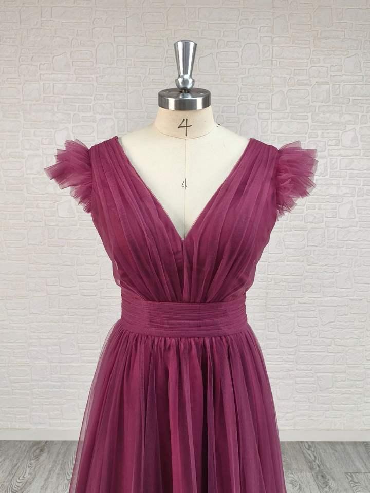 LY-BD0023 Bridesmaid Dress for Wedding Elegant Classic Tulle V Neck Sleeveless Floor Length Multi Colors Customized Size