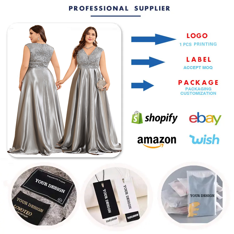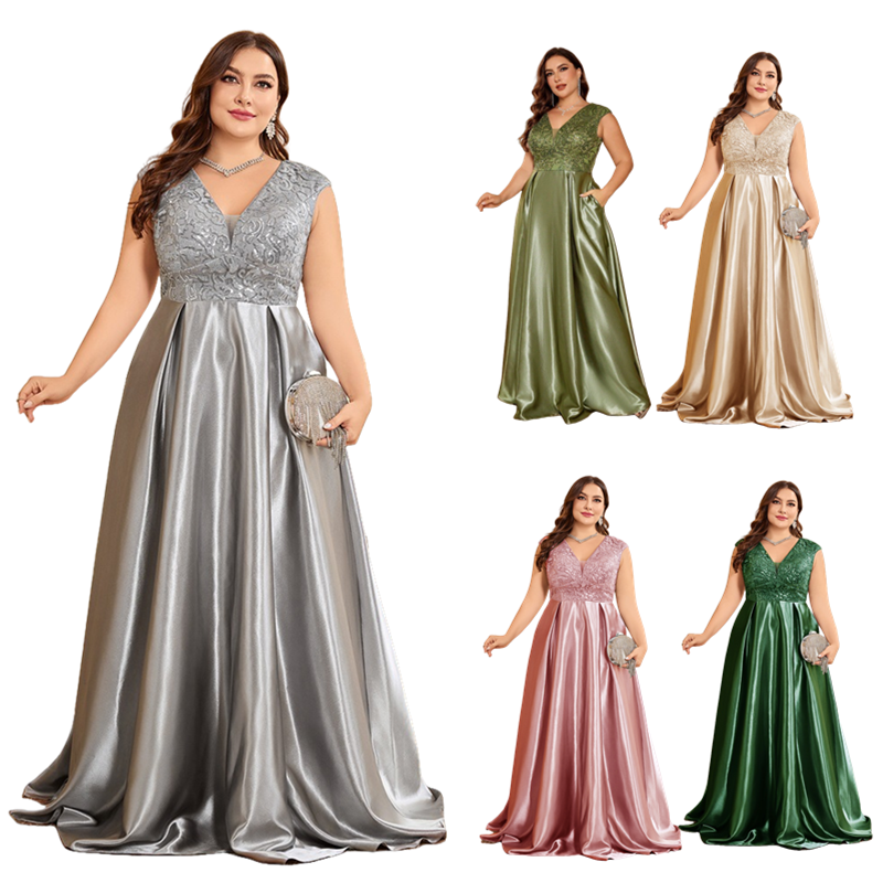 LY2483D Abiti da Sera Lussuosi Taglie Forti per Donna Senza Maniche Scollo a V in Raso e Pizzo Linea ad A Abiti da Sposa per Damigella d'Onore
