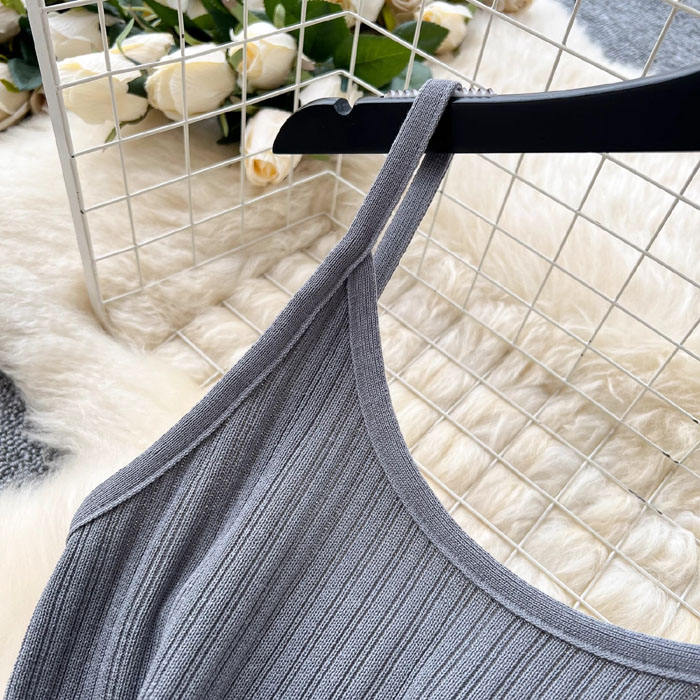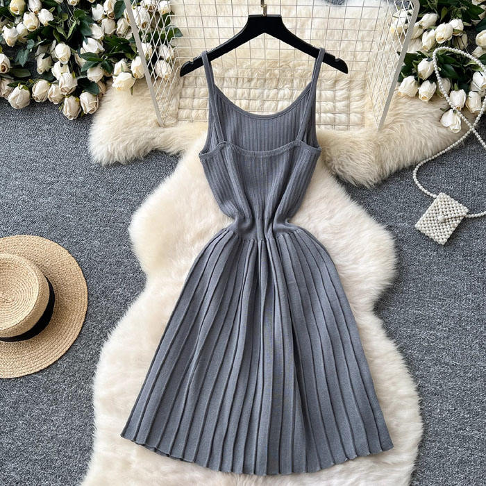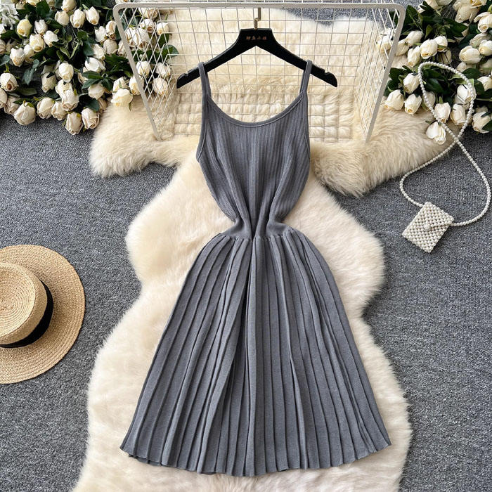 LY4113 New 2025 Summer Boutique Wholesale Gray Color Plated Slim Waist Knitwear Women's Knit Dress