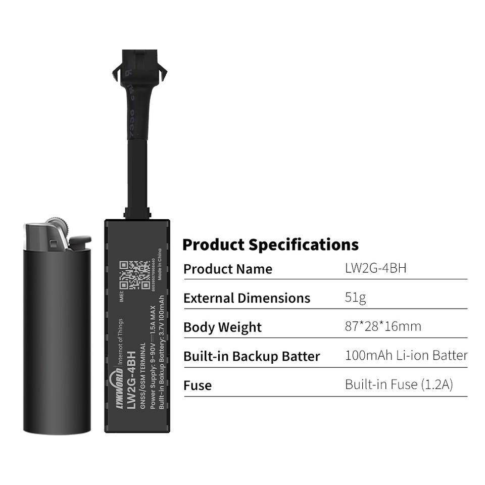 LYNKWORLD LW2G-4BH Mini Localizzatore GPS 2G con Blocco Motore Remoto, Antifurto, Allarme Vibrazione, Montaggio su Cruscotto Moto, PC, 1 Anno